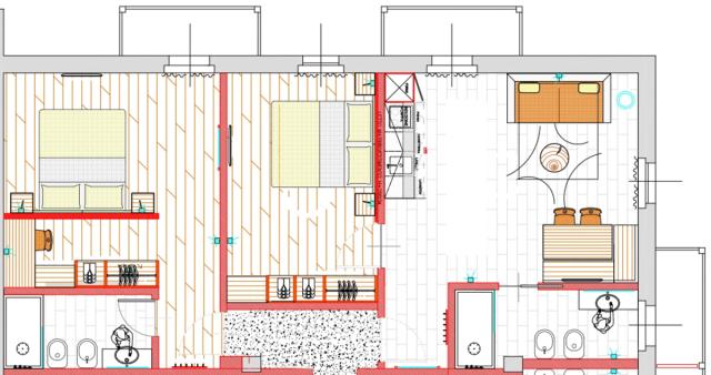 rozkladacím gaučom pre 2 osoby, sociálne zariadenie, balkón #bilo 5: 38 m² - 1 spálňa s manželskou posteľou (možnosť oddeliť lôžka) a 1 samostatným lôžkom, obývacia izba s kuchynským kútom a rozkladacím gaučom pre 2 osoby, sociálne zariadenie, balkón #trilo 6: 50 m² - 2 spálne s manželskými posteľami (možnosť oddeliť lôžka), obývacia izba s kuchynským kútom a rozkladacím gaučom pre 2 osoby, 2× sociálne zariadenie, balkón |